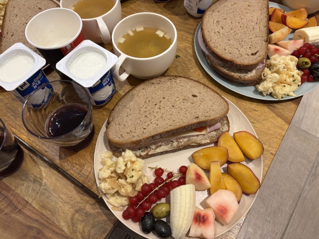 フュッセン最後の朝は、手作りサンドイッチやフルーツ、味噌汁などの朝ごはん。