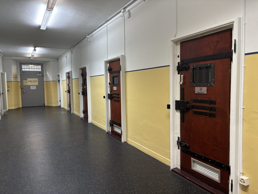当時の構造がそのまま残されていて、窓には鉄格子、部屋のドアもそのまま再利用されている。