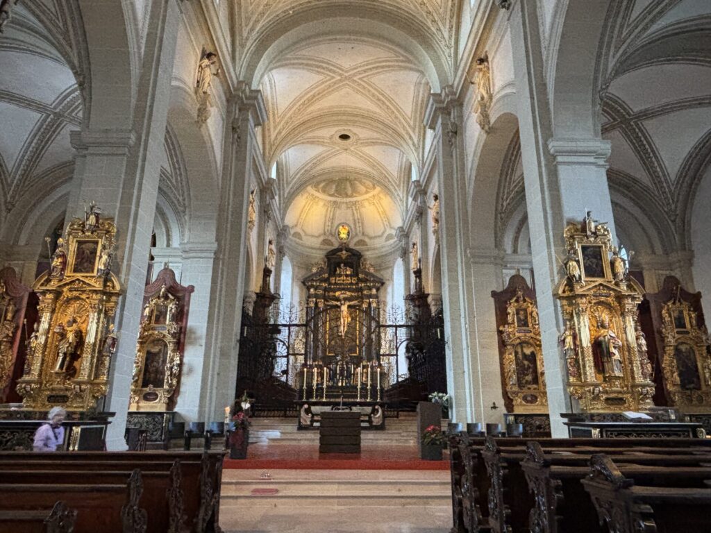 尖った2本の塔が印象的なホフ教会は、外観の重厚さに反して内部は明るく優美で、パイプオルガンや祭壇の彫刻も見応えがあっった。