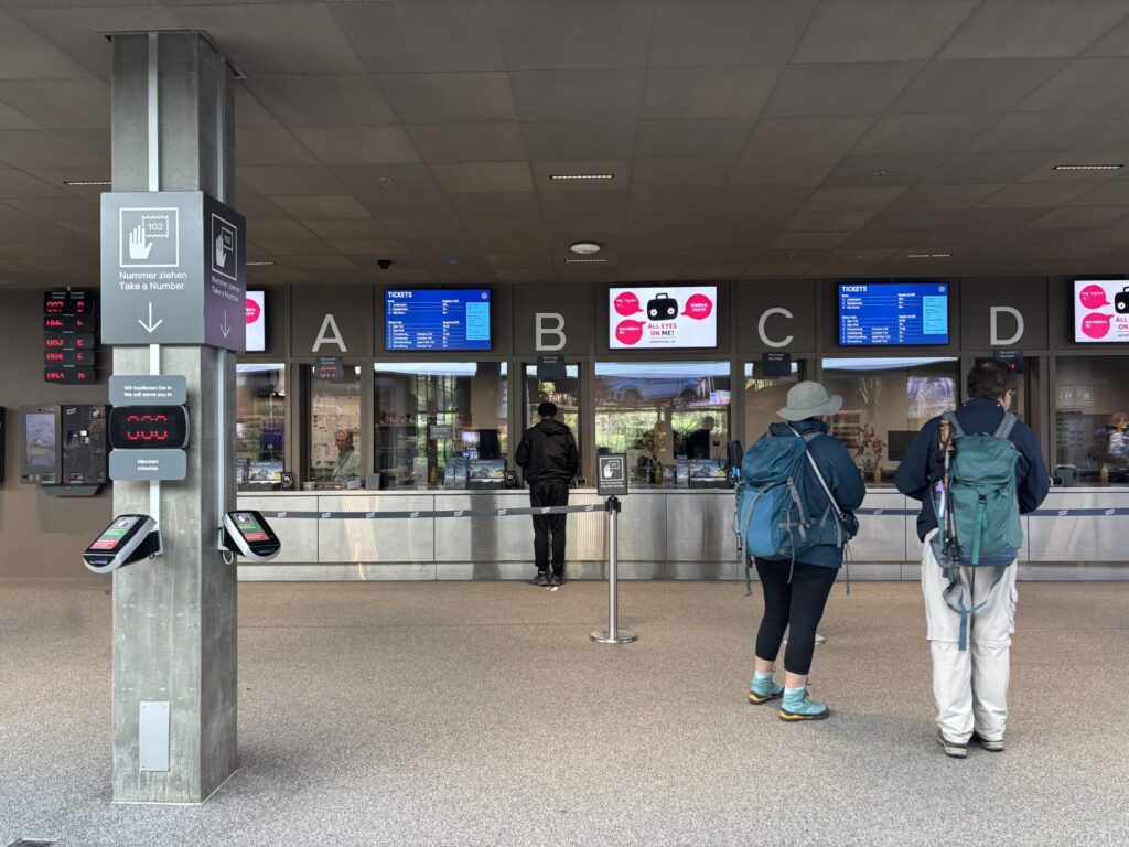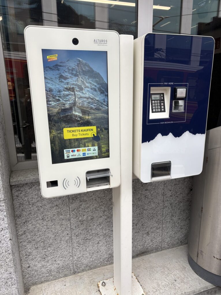 駅のホームに設置された券売機で、グリンデルワルトまでのチケットを購入。