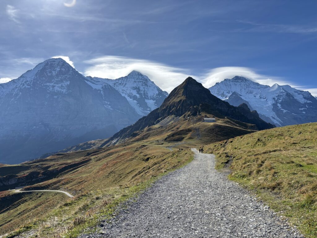 道中ずっと正面にアイガー北壁がそびえ立ち、まさに「この景色を見ながら歩くための道」という感じ。