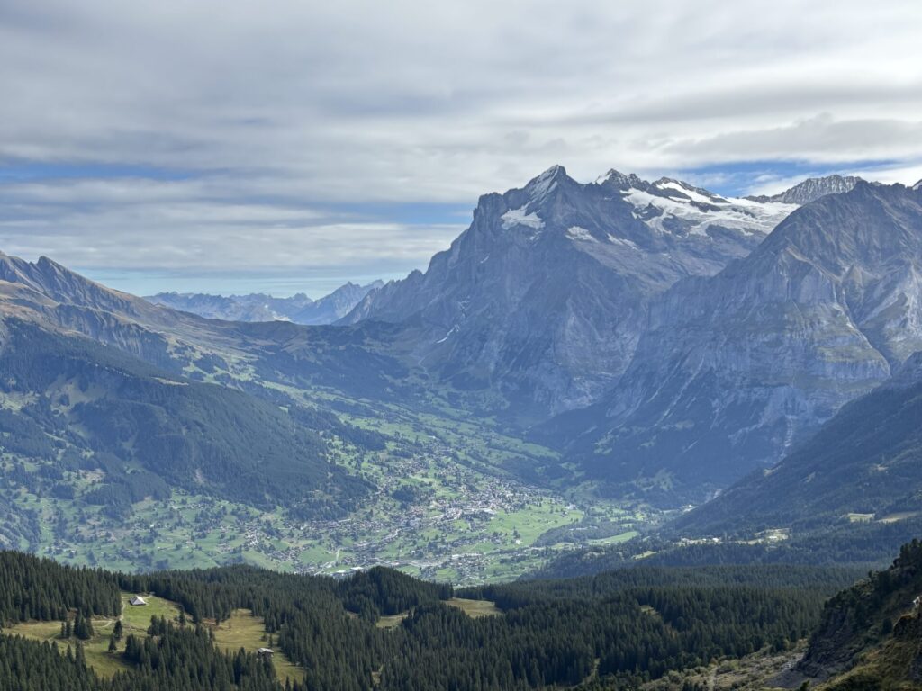 歩いている途中には、グリンデルワルトの村を眼下に見下ろすような絶景ポイントも。