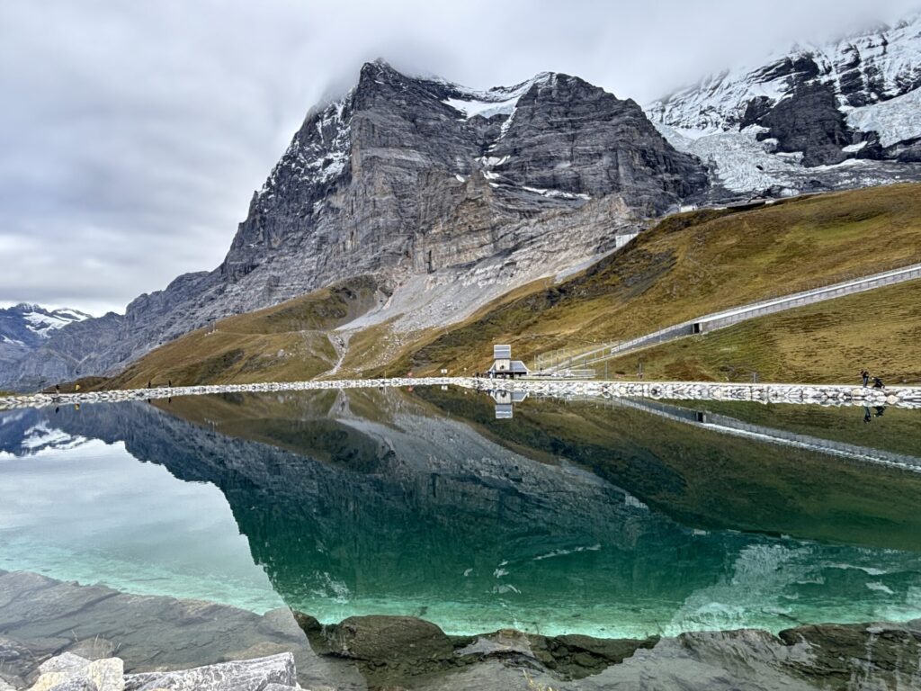 その湖面には、アイガーやメンヒの姿がくっきりと映り込んでいて、まるで絵画のような光景だった。