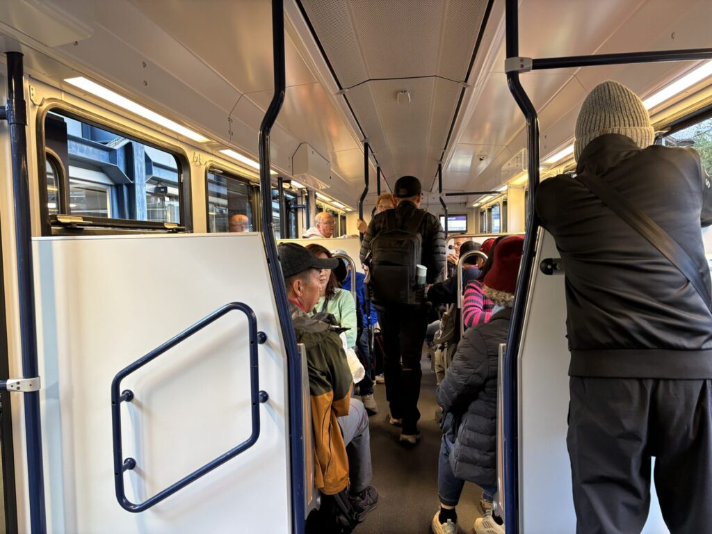 ちょうど出発直前の列車があり、ギリギリで乗り込んだものの、なんとか家族4人並んで座ることができた。