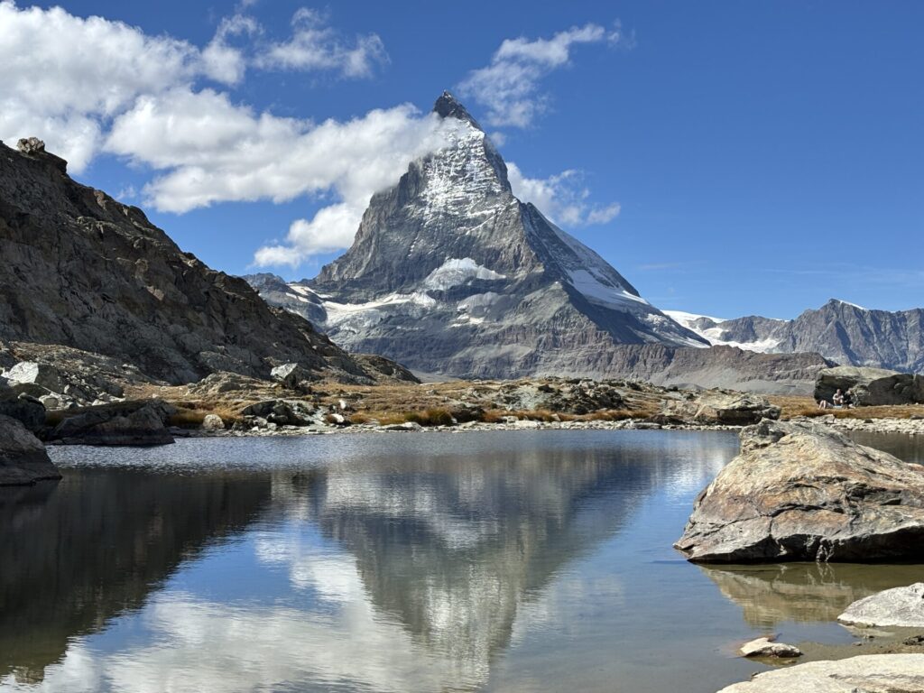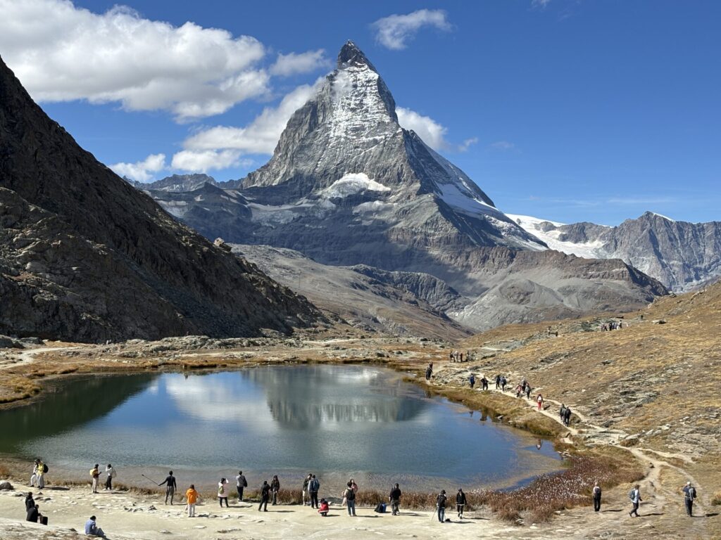 午後はローテンボーデンからリッフェルゼーまでのハイキングで、鏡のような湖面に映る“逆さマッターホルン”を堪能。