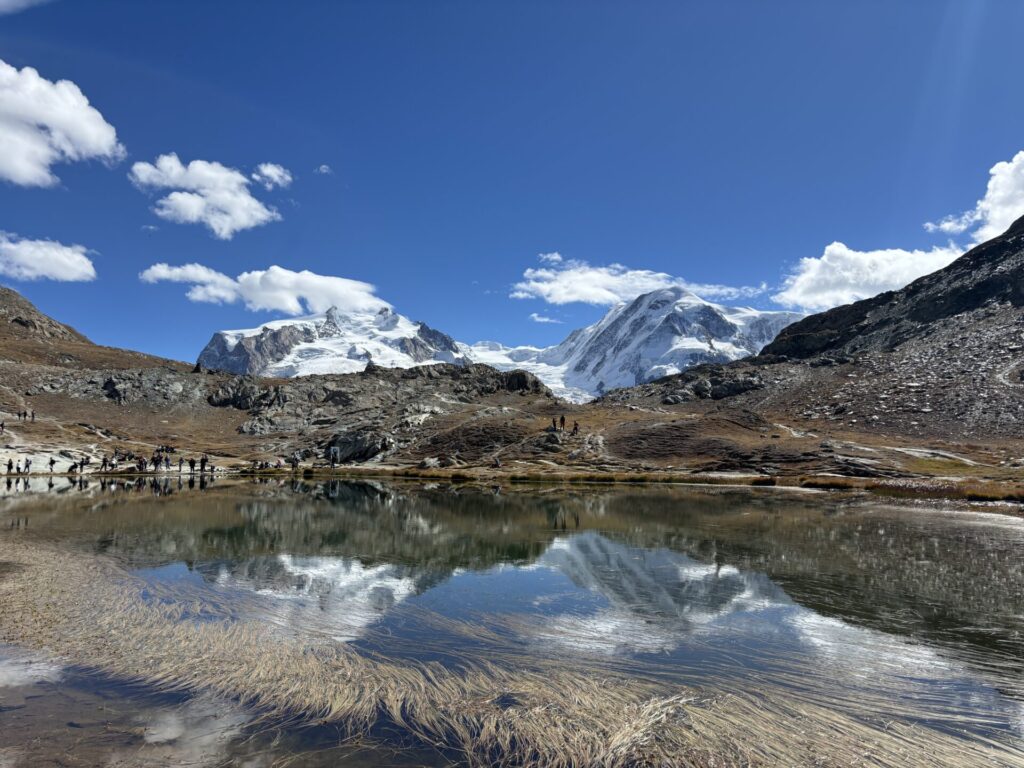 こちらも静かな湖面に逆さマッターホルンが映っていて、写真好きにはたまらない撮影ポイントになっていた。