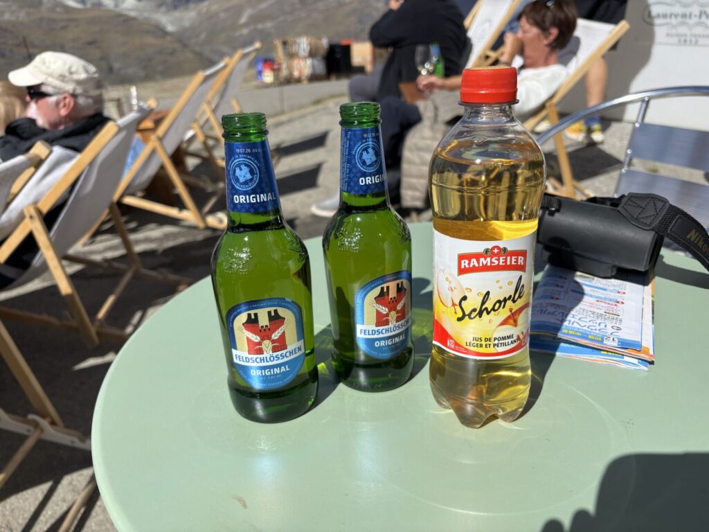 「せっかくだから、マッターホルンを見ながらお酒を飲みたい!」とリクエストを受け、駅併設のカフェへ。