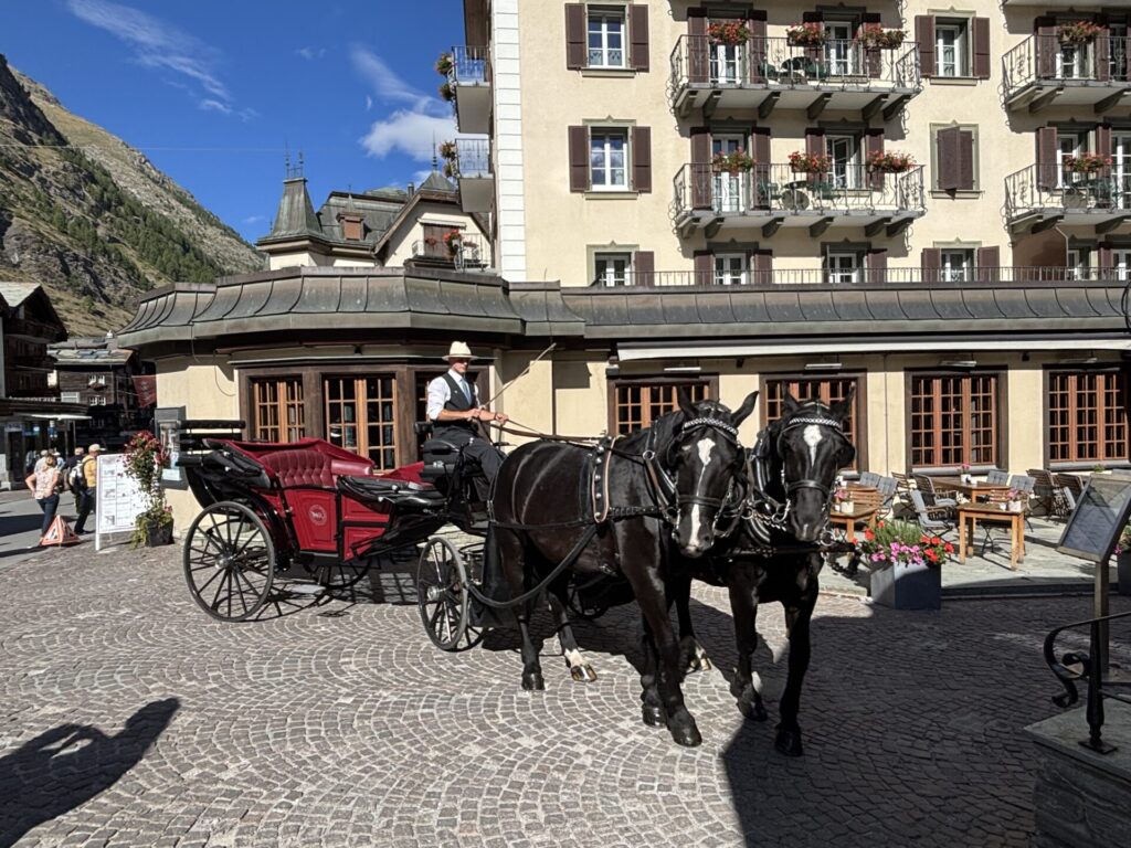 ツェルマットの街では、馬車や路上パフォーマンスにも出会い、夜は日本の味でほっとひと息。