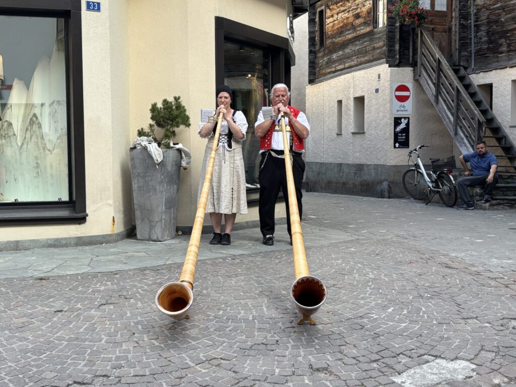 さらに、展望台でも見かけたアルプホルンの生演奏が、ツェルマットの街中でも行われていた。