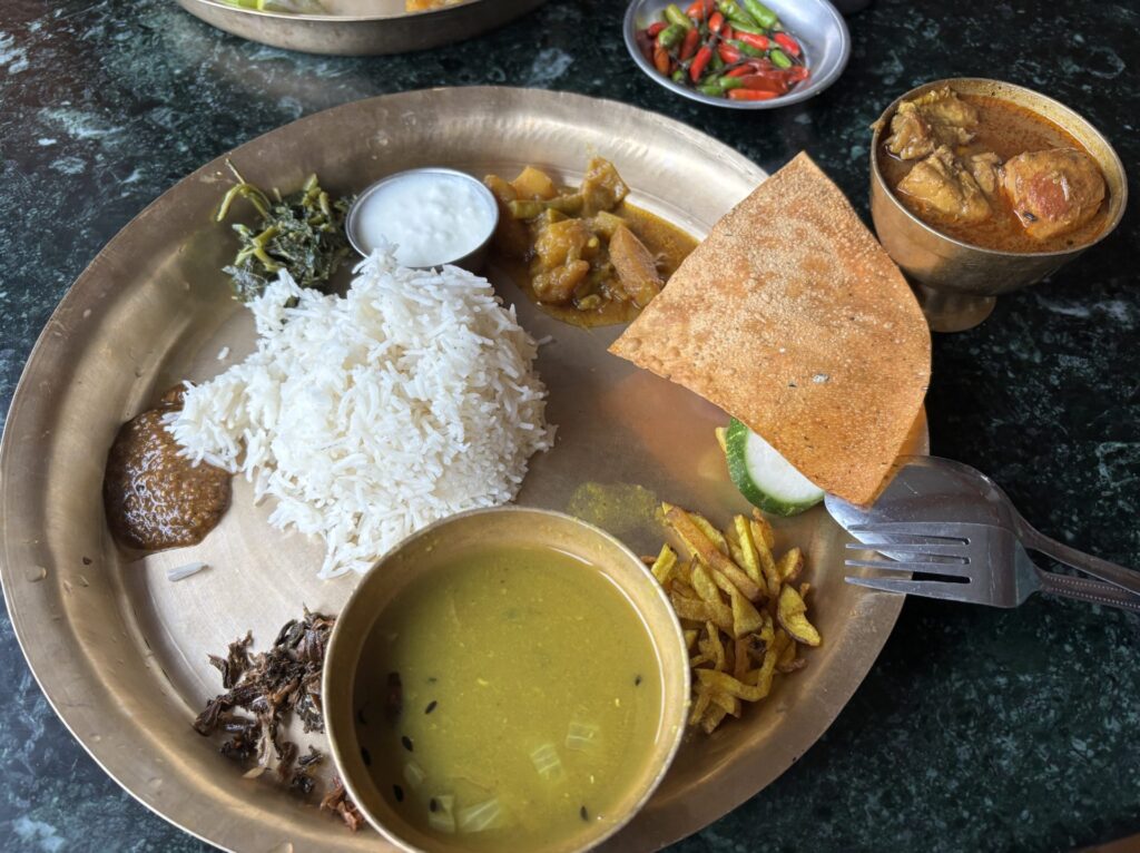 昼ごはんは、ネパール定番の家庭料理「ダルバート」。