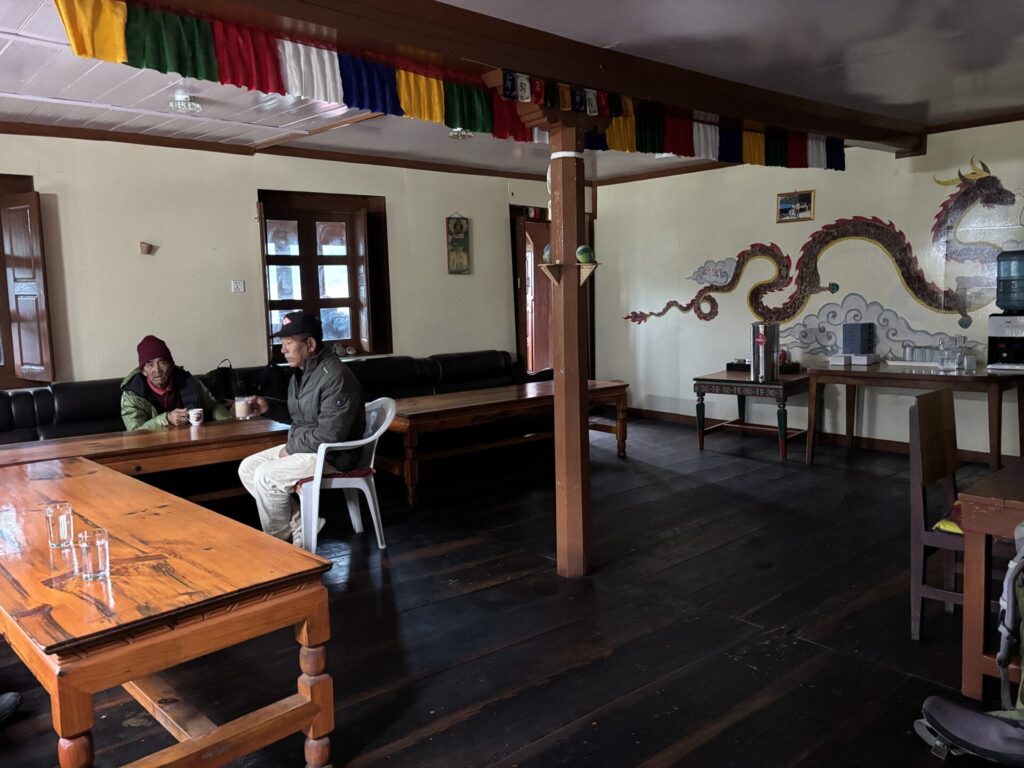 昨夜は停電中だったため薄暗がりの中での夕食だったけれど、今朝は太陽の光が差し込み、ネパールの山小屋らしい素朴であたたかな雰囲気をようやく感じることができた。