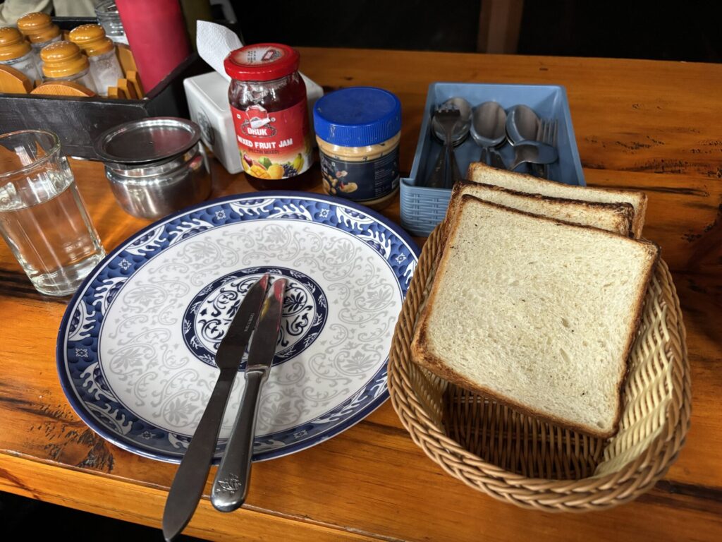 パンは素朴ながらも香ばしく、コーヒーもホッとする味だったけれど、ラッシーは少しクセのある風味で、私はちょっと苦手だった。