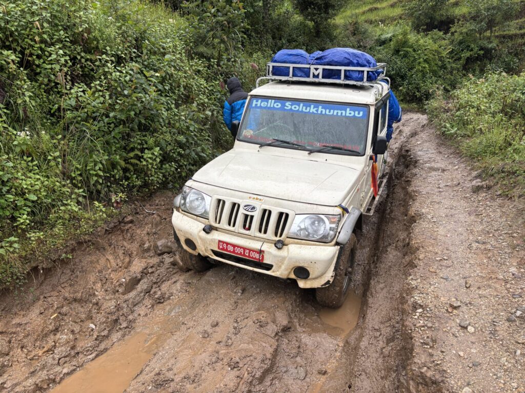 翌日はさらに過酷で、未舗装のぬかるんだ崖道、タイヤが水没しそうな“川のような道路”を命がけで走り抜け、ようやくスルキャへたどり着いた。