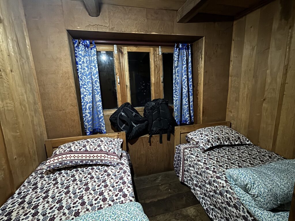 ベッドが2台置かれているだけの簡素な部屋だけど、雨風をしのげるだけでもありがたい。