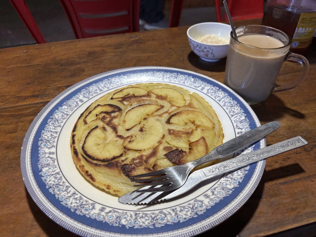 朝ごはんはアップルパンケーキで、素朴な味がした。