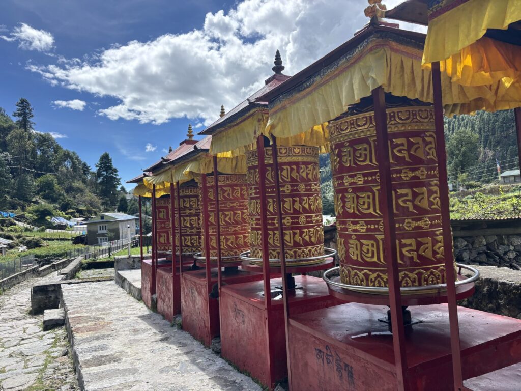 ネパールの山間部では、道沿いにチベット仏教の「マニ車」が並んでいることがある。