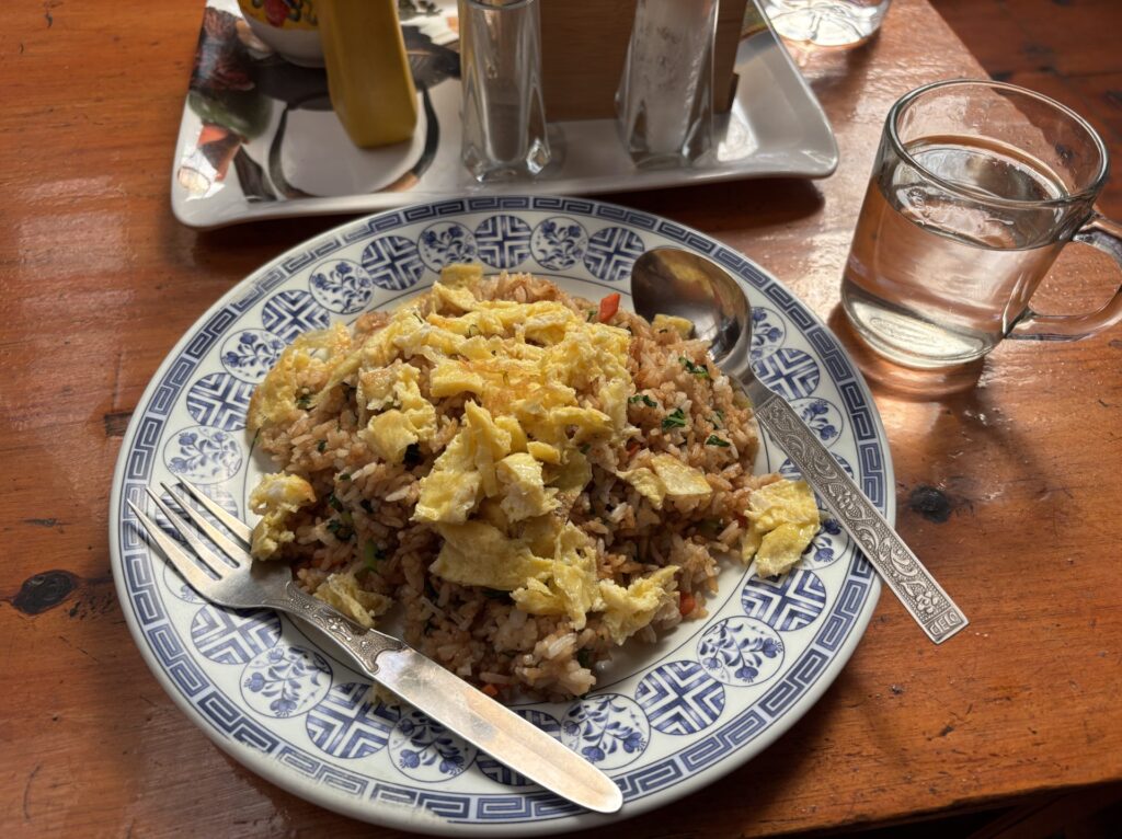 お昼は正午頃、グルミという小さな町のローカル食堂に到着。