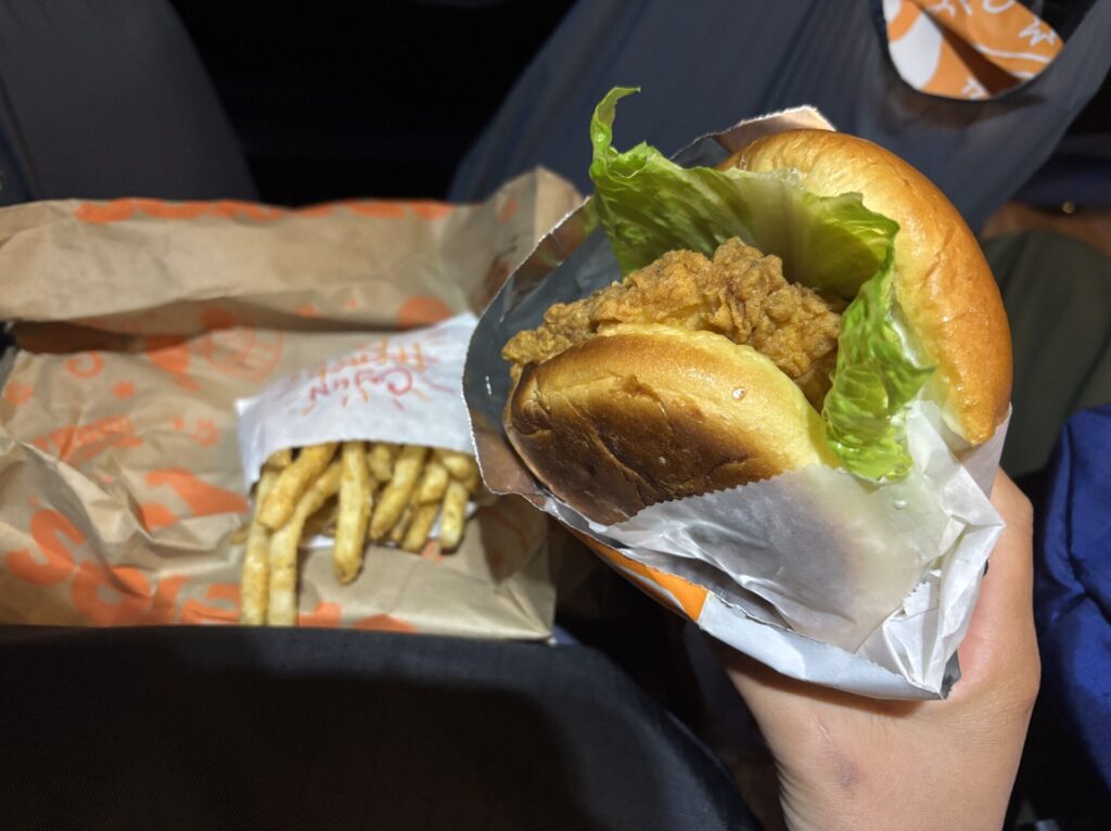 チケットを手にしたあとは、フライドチキン専門店「popeyes」でチキンバーガーセットをテイクアウト。