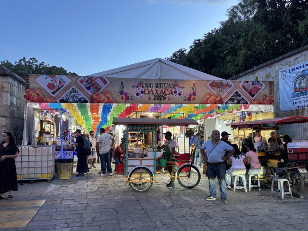 カラフルなお土産、メスカル、刺繍の民族衣装やアクセサリーが並ぶ屋台がずらり。