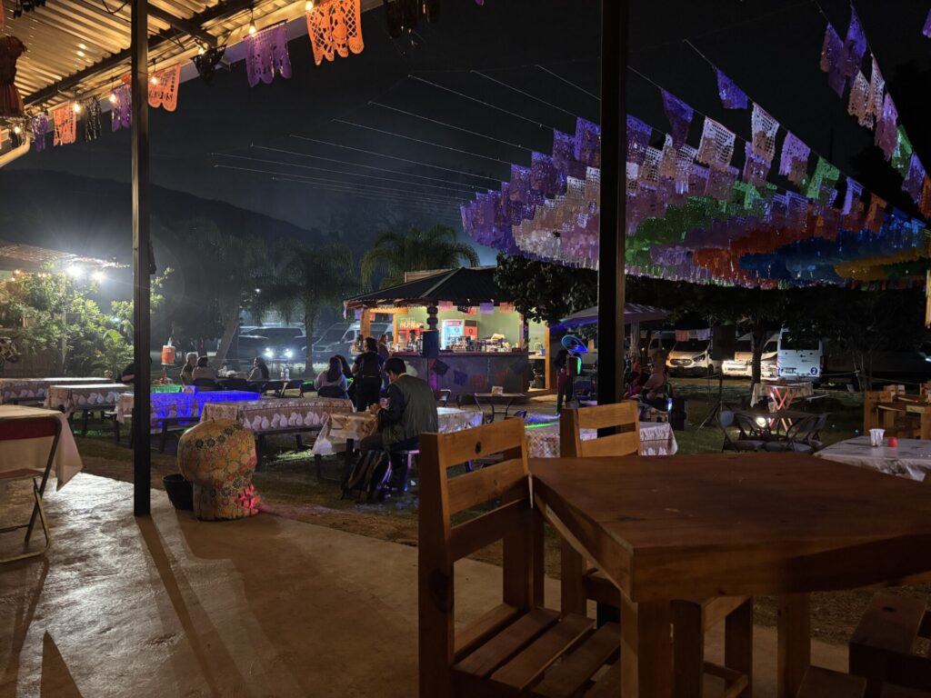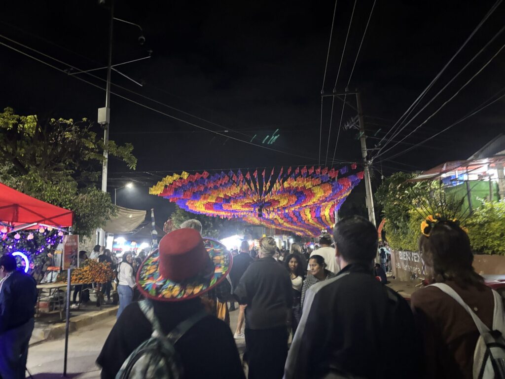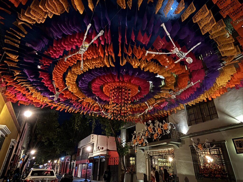 通りを歩いていると、頭上にはカラフルなパペル・ピカド(Papel picado)が風に揺れていた。