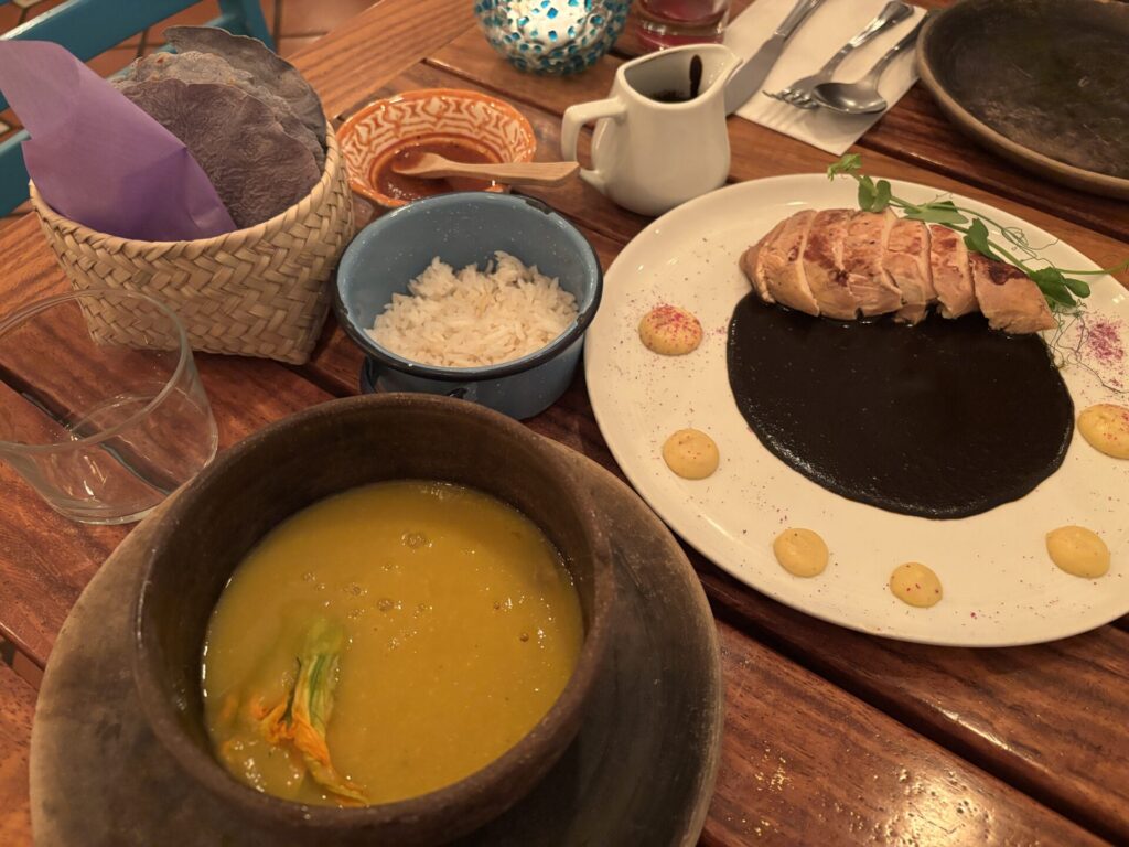 注文したのは、黒モレ(Mole negro)とかぼちゃのスープ。