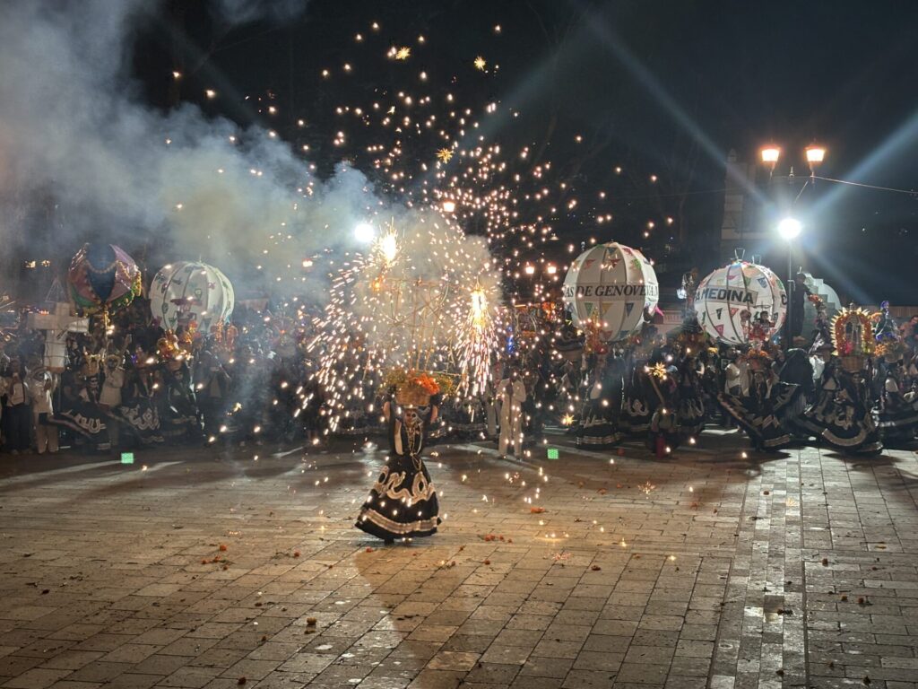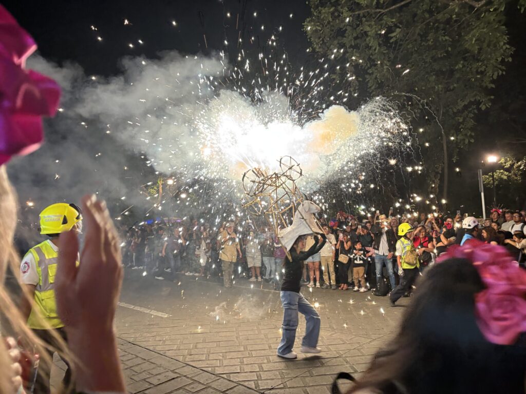そして、会場の熱気がピークに達したそのとき――頭に花火装置を背負った踊り手が登場し、ぐるりと回転するたびに、火花が観客の目の前にシャワーのように降り注いだ。