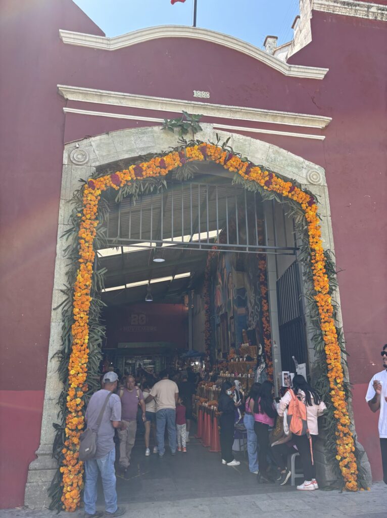 サント・ドミンゴ・デ・グスマン聖堂の近くでは、死者の日シーズンにあわせた特設市場も開かれていた。