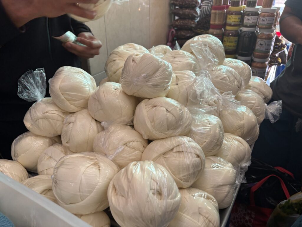 目を引いたのは、くるくると巻かれた白い「オアハカチーズ」。