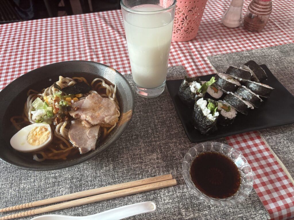 この日はラーメンと巻き寿司、そしてカルピスを注文。