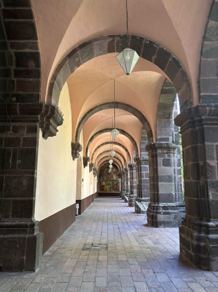 アーチが続く回廊や光の降り注ぐ中庭が広がり、まるで時代を遡ったかのような雰囲気だった。