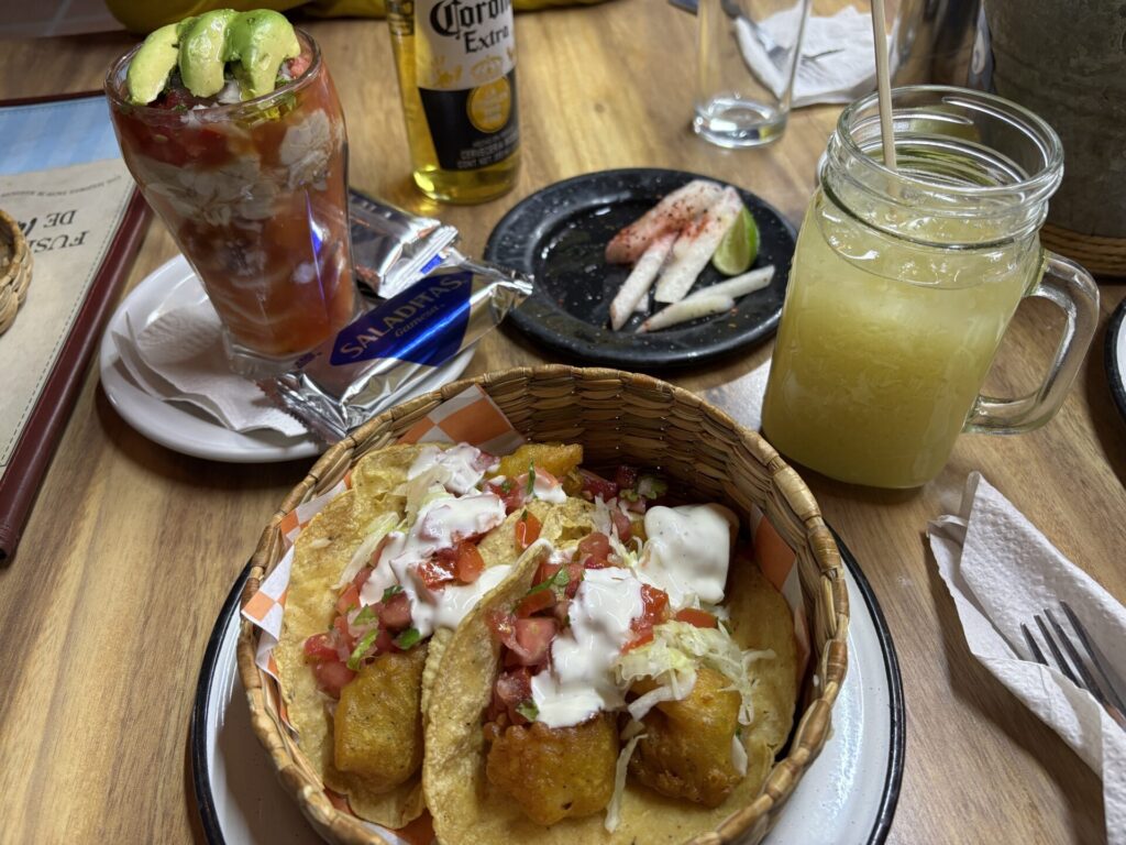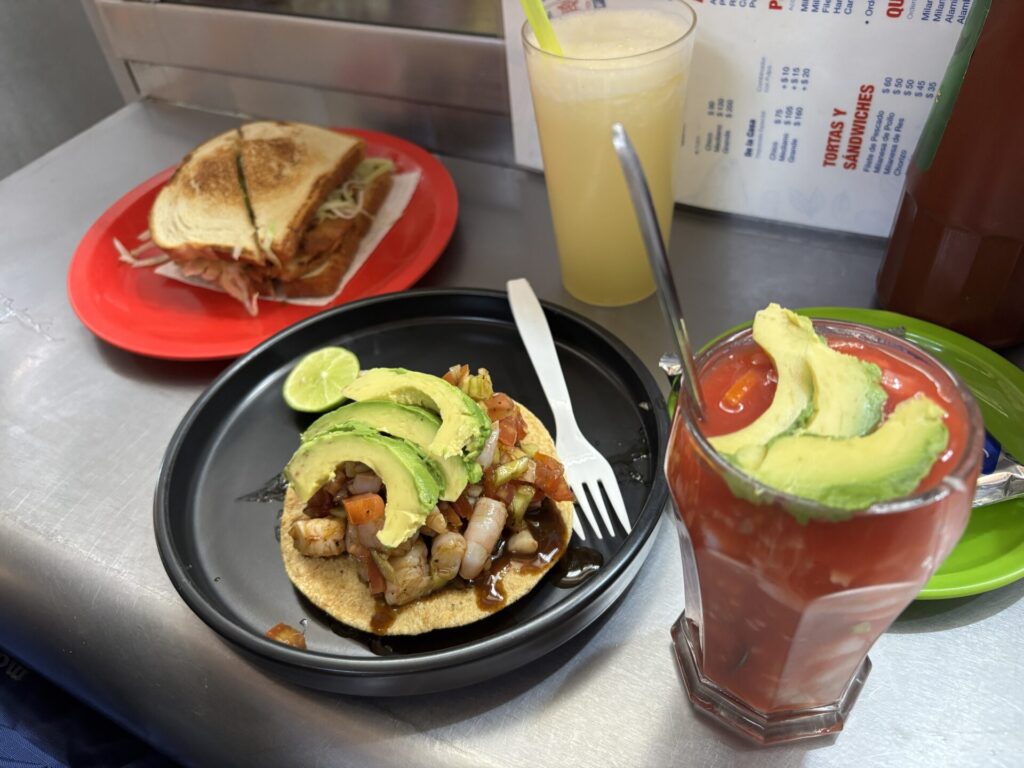 私たちが選んだのは、エビタコスと、エビ・タコ・カキ入りのシーフードカクテル。