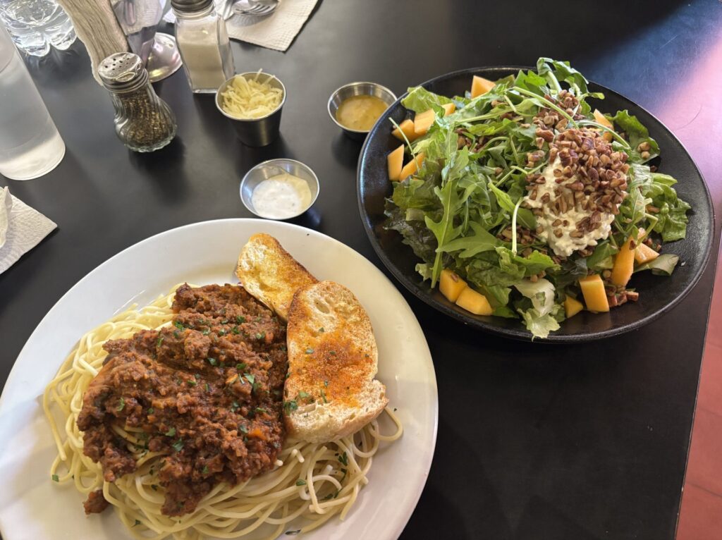 ボロネーゼとカプリチョーザサラダはどちらもとても美味しく、久々にたっぷり生野菜が食べられて体が喜んだ。
