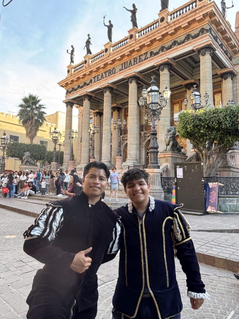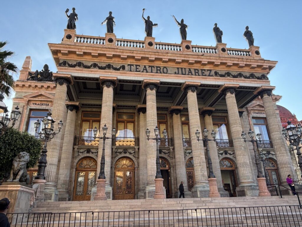 街の中心にあるフアレス劇場は、重厚な柱と彫刻が目を引くグアナフアトの象徴。