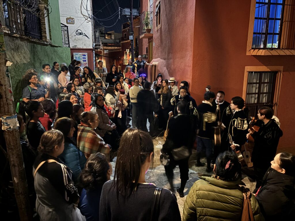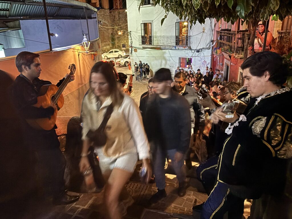 グアナフアト名物は、エストゥディアンティーナ(楽団)の生演奏を聞きながら、夜の街を一緒に歩くツアーなのだそう。
