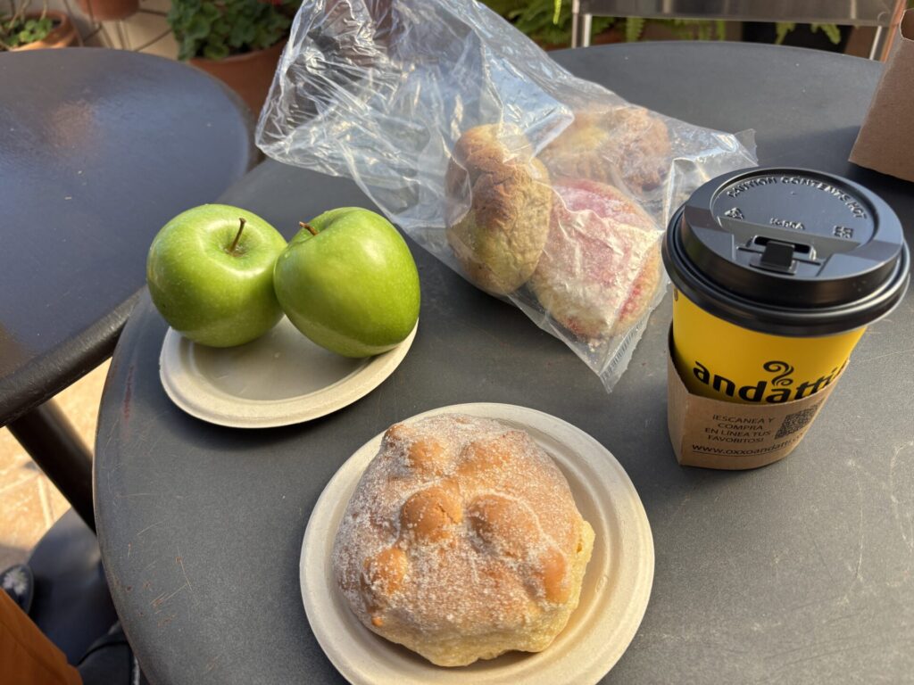果物屋で翌日の朝食用にリンゴを買い、市場近くのパン屋「Panadería la Purisima」でパンも購入。