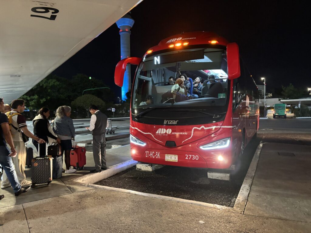 カンクン空港は配車アプリが使えないため、移動手段は割高のタクシーか、ADOバスの2択だ。