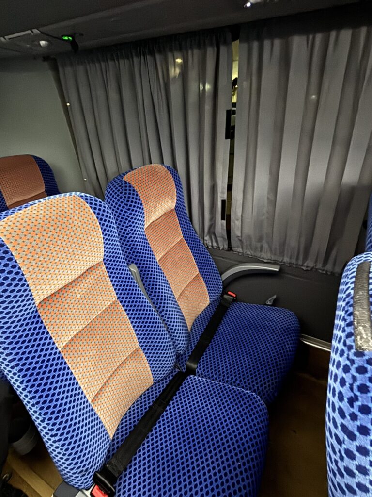 赤い車体のADOバスは指定席で、上位クラスよりはシンプルだけれど、とても清潔で快適だった。