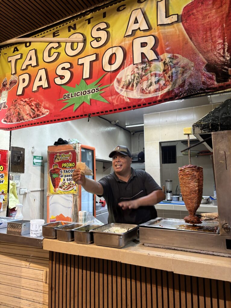 「試食してみて」と焼き立てのお肉を出してくれたタコス屋さんで、5個80ペソのタコスを購入。