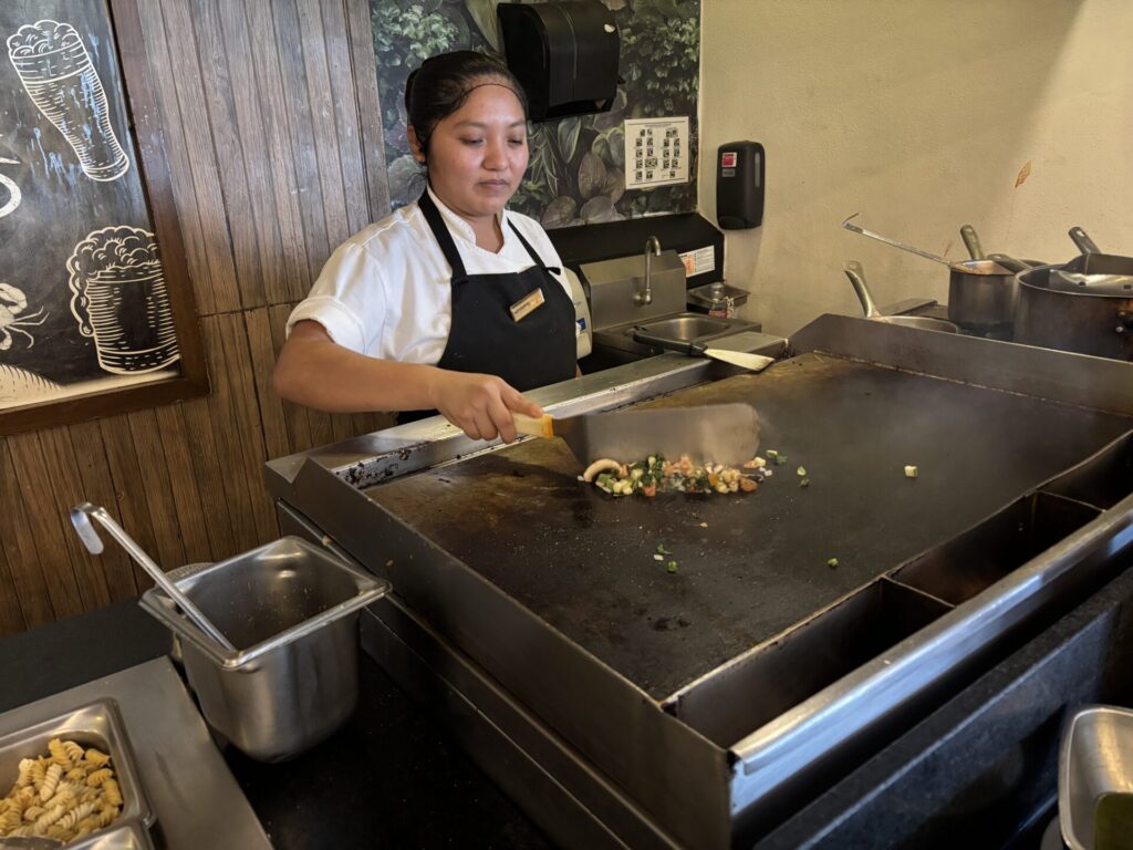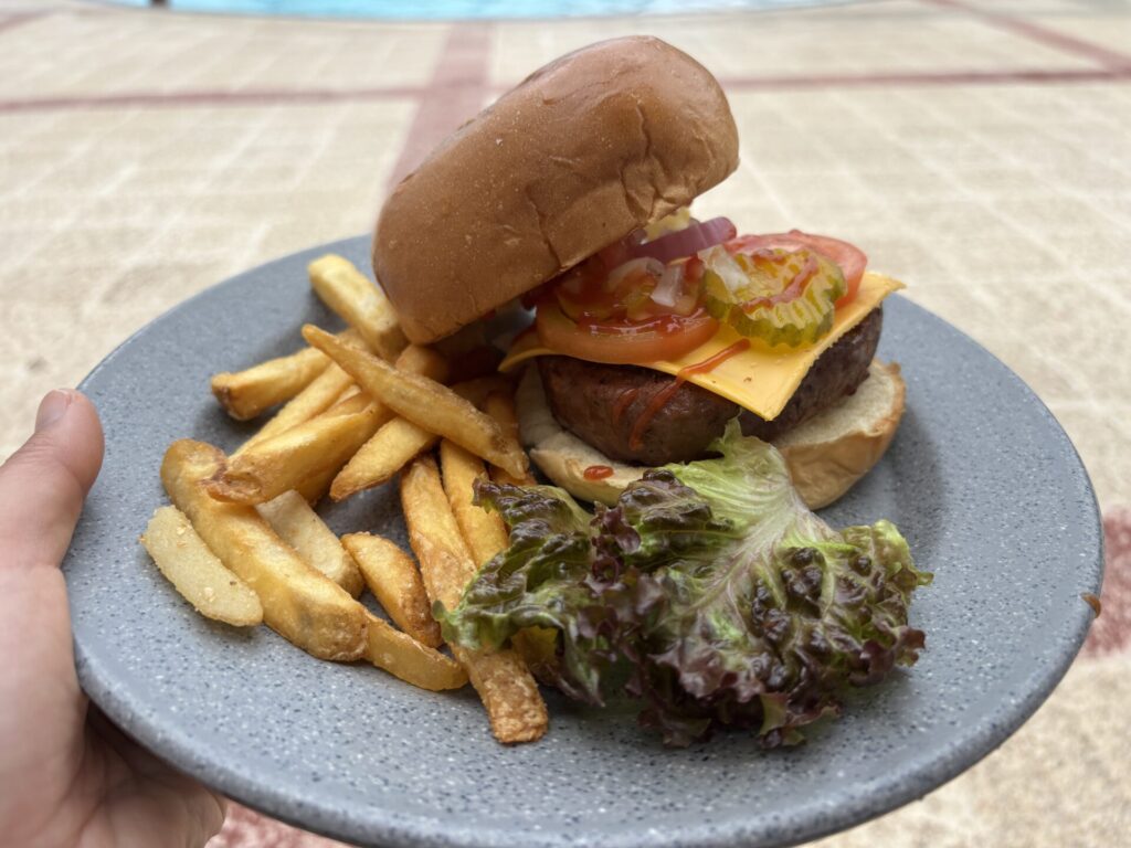プールサイドにはタコス屋台とハンバーガー屋台が並んでいて、シェフがその場で作ってくれる。