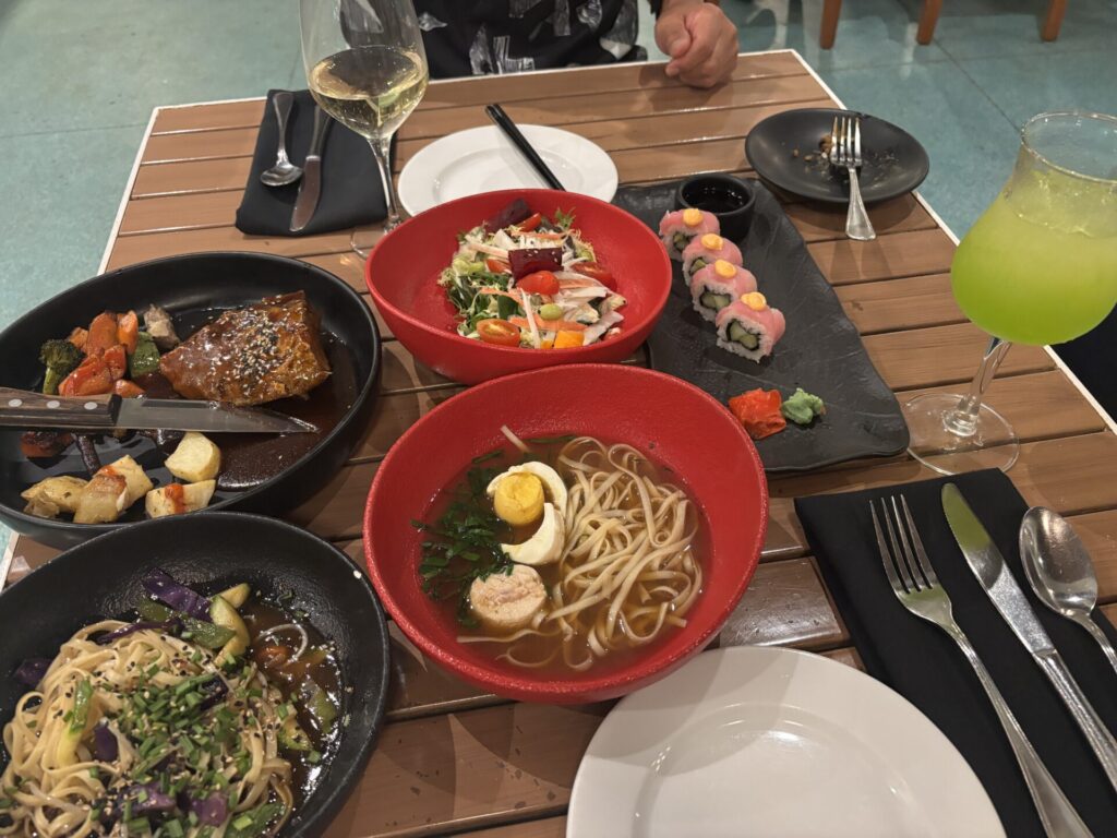 アジアン料理店でツナロール、チキンラーメンを注文したのだけど、なぜか野菜サラダやチキングリルまで出てくる謎の大盤振る舞い。