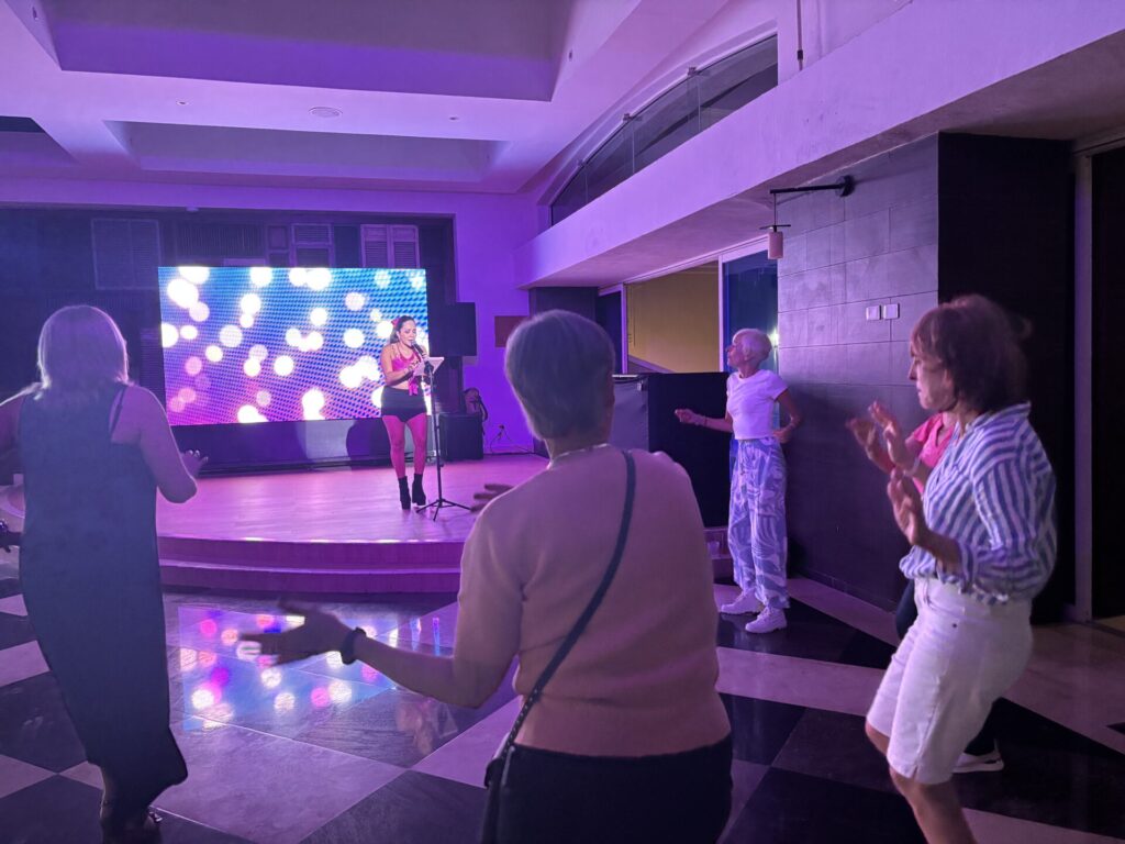 歌手の周りでは宿泊客が楽しそうに踊っていて、旅先らしい明るい時間が流れていた。