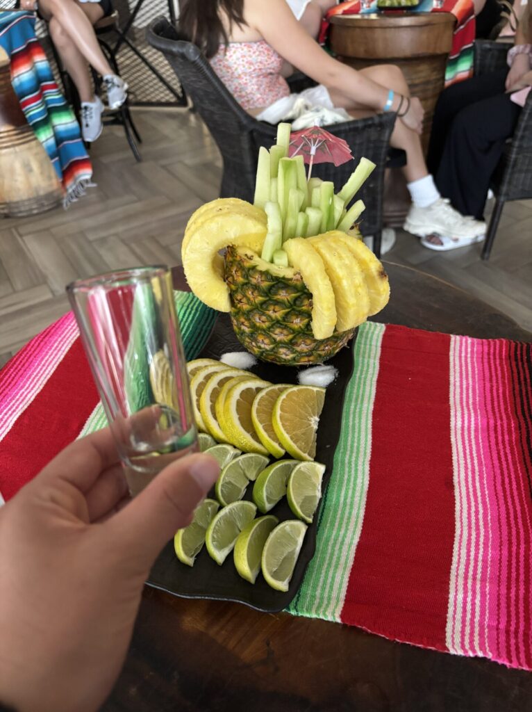 テーブルにはパイナップルやライム、レモンが綺麗に盛られていて、お酒を味わいながらつまめるようになっていた。