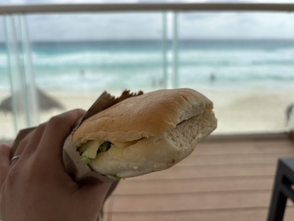 チェックアウト直前にカフェでサンドイッチをもらい、テラスでビーチを見ながらランチ。
