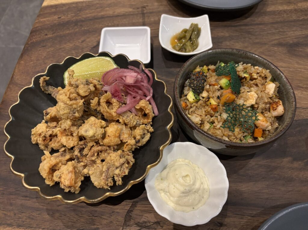 注文したイカフライと焼き飯は、久々の日本の味で心がほどける美味しさ。