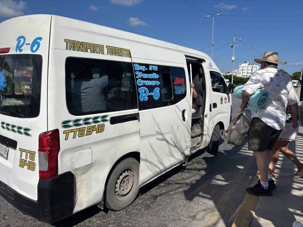 まずはADO Terminal Centro近く、マクドナルド前あたりのバス停からR6のミニバンに乗り、フェリー乗り場のプエルト・ファレス港を目指す。