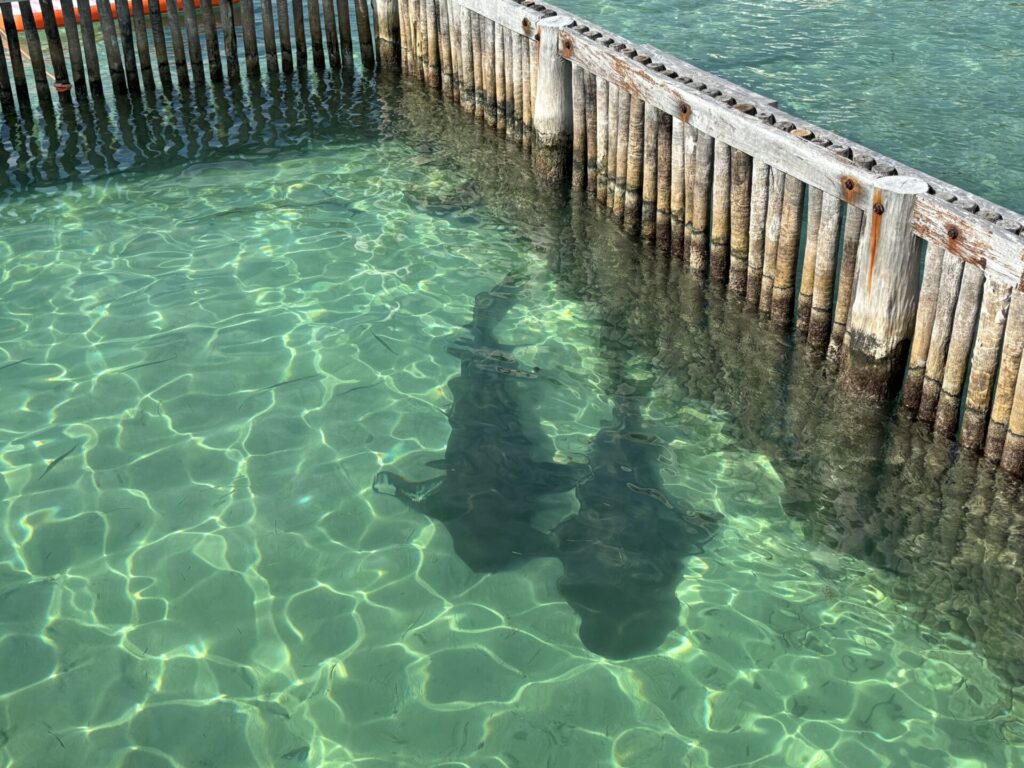 そして驚いたことに、その前のビーチにはサメが2匹。