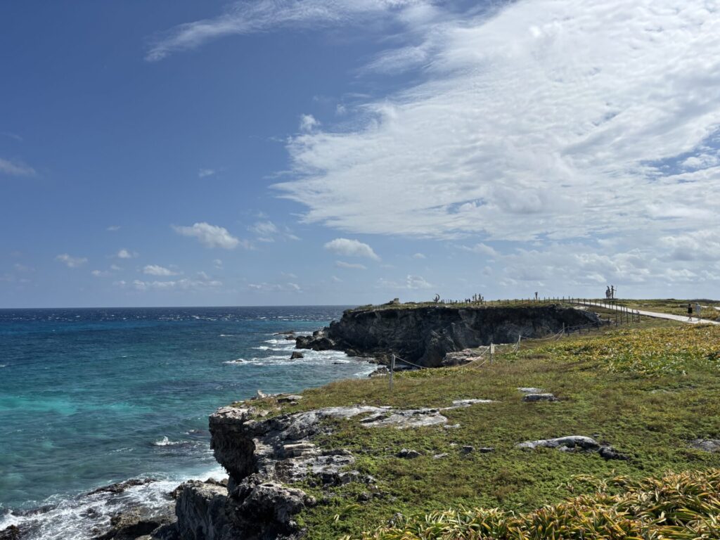 断崖の上から眺めるカリブ海のグラデーションは圧巻だった。