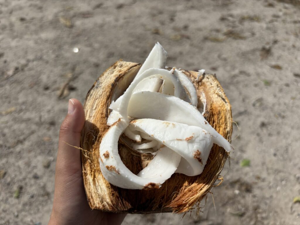 飲み終わるとお店の人が実をきれいにカットしてくれ、日本ではなかなか味わえないフレッシュなココナッツを父は物珍しそうに食べていた。