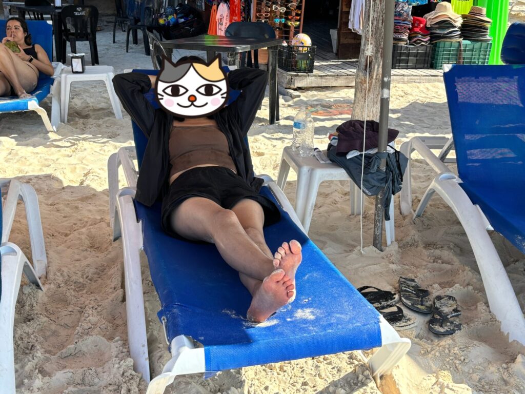 サンベッド2台とパラソルを600ペソ(=5,175円)でレンタルし、夕方までのんびり。