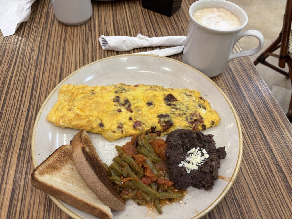 朝10時20分発のフライトなので、朝食は搭乗待ちの時間に空港でとることにした。